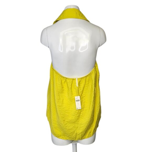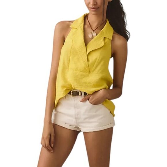 Anthropologie Sleeveless Wide Placket Halter Collared Top