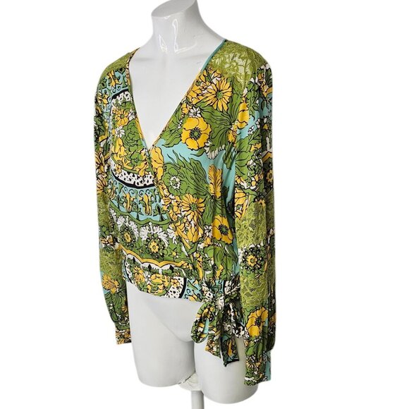 Anthropologie TINY Long-Sleeve Printed V-Neck Wrap Top