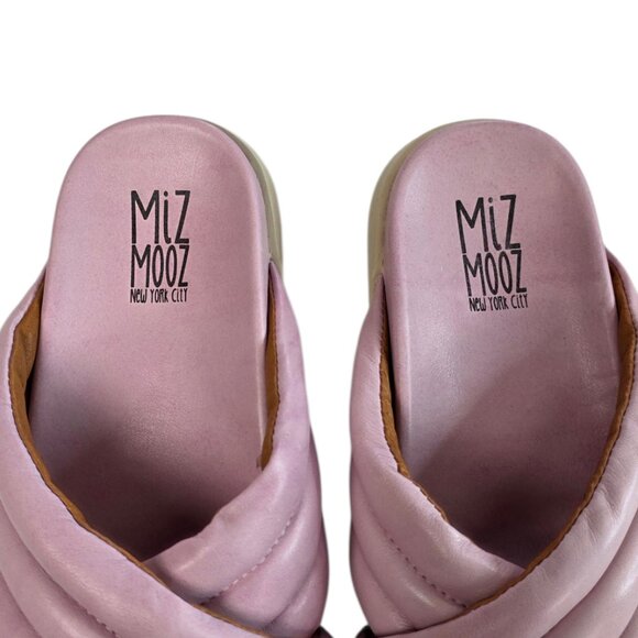 Miz Mooz Marinella Puffy Slide Sandals, Pinky, Leather, Slip On, Sz 40 / 9-9.5