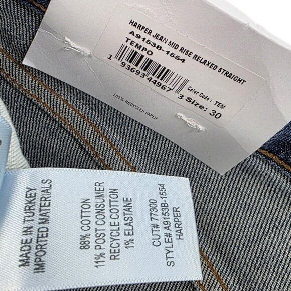 womens agolde harper relaxed straight jeans size 30